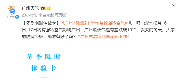 16日起一股强冷空气将让广州直接获得“冬天”体验卡。