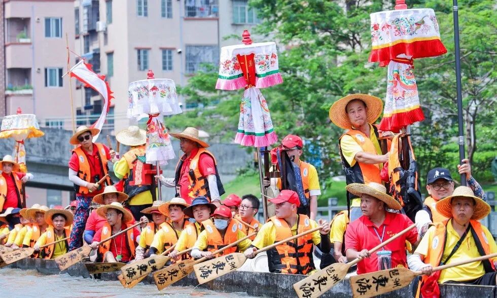从农历四月廿九开始,龙舟便纷纷启程,展开一场场别开生面的探亲之旅,龙舟们穿梭在村与村之间,互访亲友,共叙情谊。