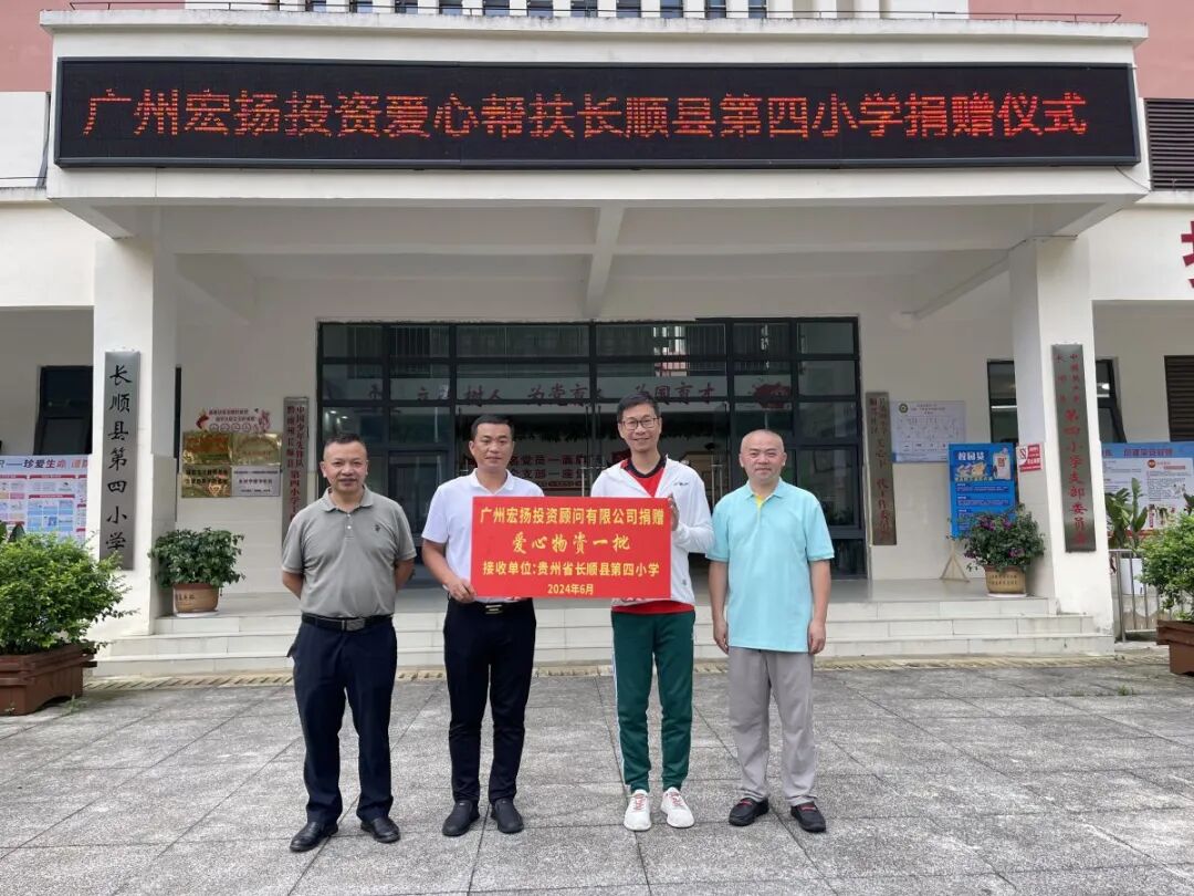 捐赠活动结束后,长顺第四小学冯校和罗校一起合影留作纪念。校方对宏扬不远千里的赠物资送温暖的行为表示由衷的感谢。
