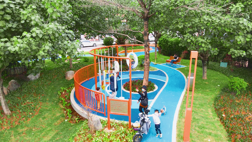 公园增设家长等候广场、稚趣游戏场、时光长廊、休憩坐凳、游乐慢跑道等,打造最美上下学街角,营建“老幼友好型”共享空间,让孩子们在安全有趣、友好便捷的绿地环境中释放玩乐天性,留下快乐难忘的童年回忆。