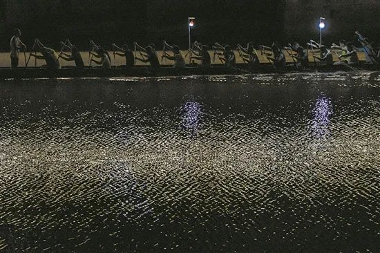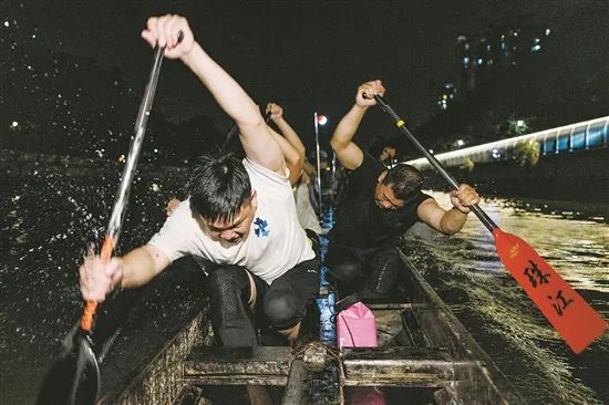 夜幕降临,广州市黄埔区乌涌上,传来了嘿哟嘿哟的叫喊声,岸上的市民不时呐喊助威。