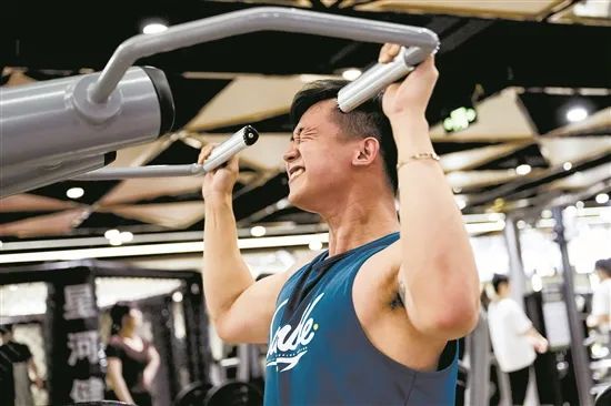 △健身房内,队员李子轩进行着高位下拉的训练。正式的龙舟赛1分多钟就结束,而他们需要经历两个月的训练。