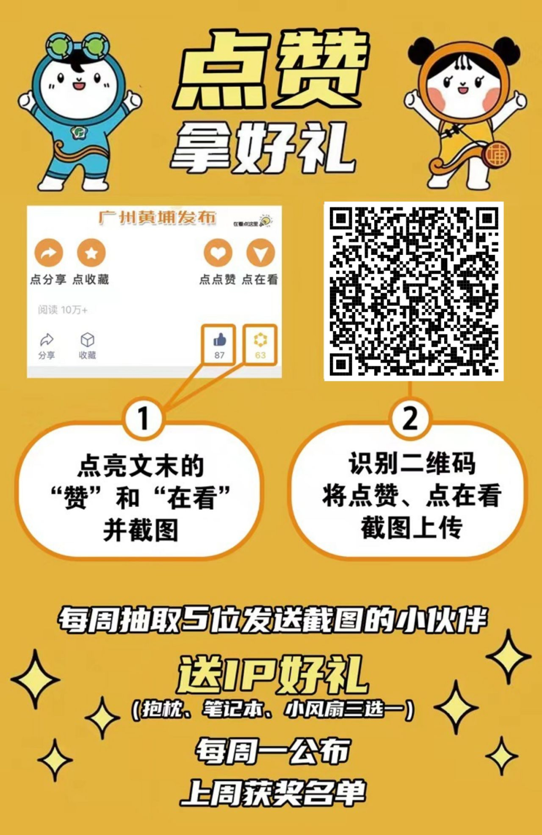 由于微信公众号平台改变了规则,请大家在阅读后点击“在看”“赞”并加星标,这样才能及时收到黄埔发布的推送。为了感谢街坊们一直以来的支持,广州黄埔发布「送好礼」啦!黄埔发布卡通抱枕、笔记本、小风扇……等你拿!活动规则↓↓