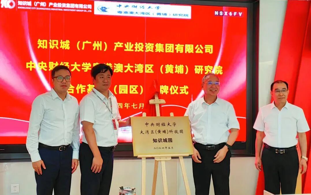 今年5月,中财研究院与知识城集团等7家企业、协会共建的中央财经大学大湾区(黄埔)科技园、中央财经大学大湾区(黄埔)科技金融产业园揭牌运行。此次与知识城产投集团签约“一基地、两园区”,进一步深化了双方的合作交流。