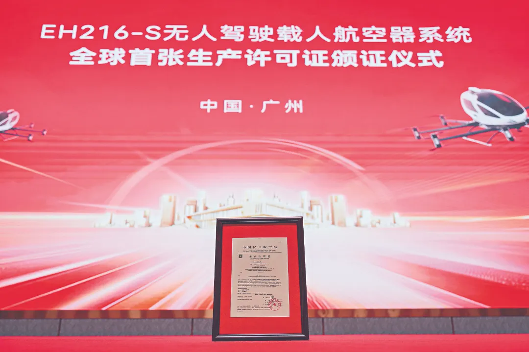 黄埔企业亿航智能EH216-S型载人无人驾驶航空器是全球首个三证齐全的eVTOL飞行器,小鹏汇天旅航者X2是国内首款成功获得特许飞行证的有人驾驶电动垂直起降产品,也在黄埔落户了首个大规模量产飞行汽车工厂。